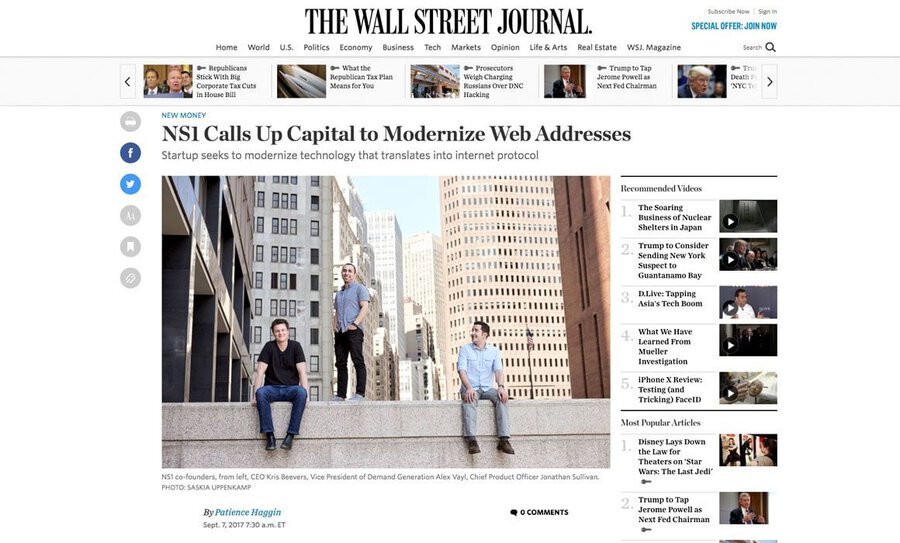 My picture of the three founders of the New York Startup NS1 got published in The Wall Street Journal.